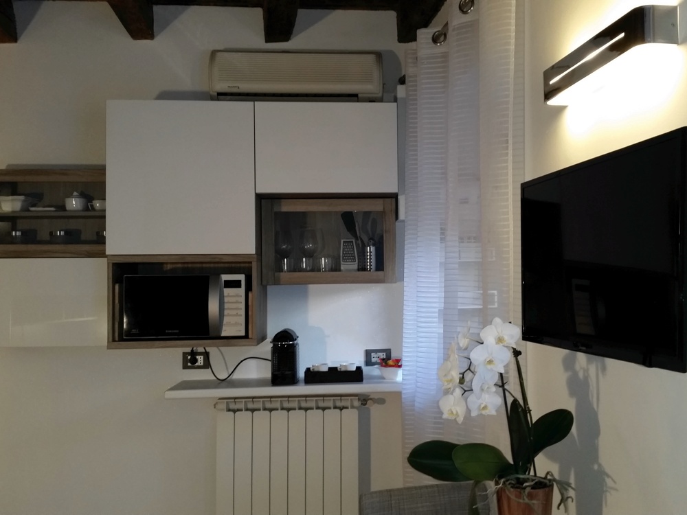 Aria condizionata, riscaldamento autonomo, angolo cottura completo di stoviglie, lavatrice, televisore led, bagno con doccia idromassaggio, asse ferro da stiro, asciugacapelli, aspirapolvere, servizio biancheria.
